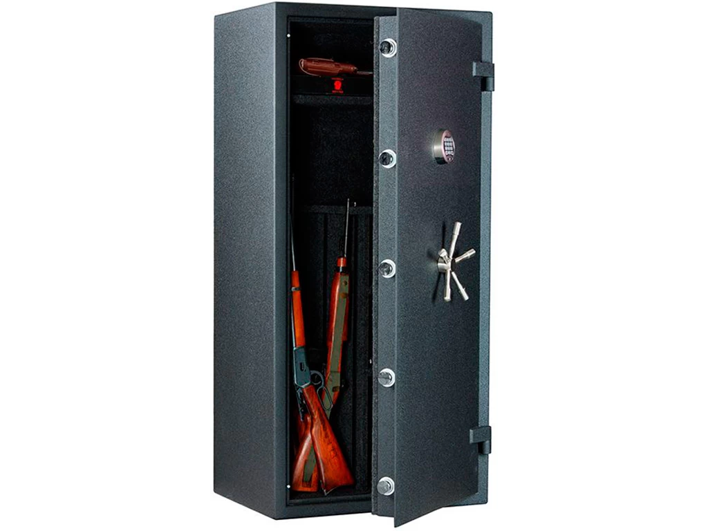 Элитный сейф для оружия. Такой сейф следует приобретать, если вас интересует комфортное размещение до двадцати четырех единиц длинноствольного оружия с длиной стволов не более 1.41 метра. Надёжность сейфовой линии Tiger подтверждена сертификатом ГОСТ Р 56367-2015 на устойчивость к взлому; также изделие по всем характеристикам отвечает требованиям МВД РФ к хранению огнестрельного оружия и боеприпасов. Сейф Tiger 70 прекрасно подойдёт для использования как в частном доме, так и в служебном помещении.